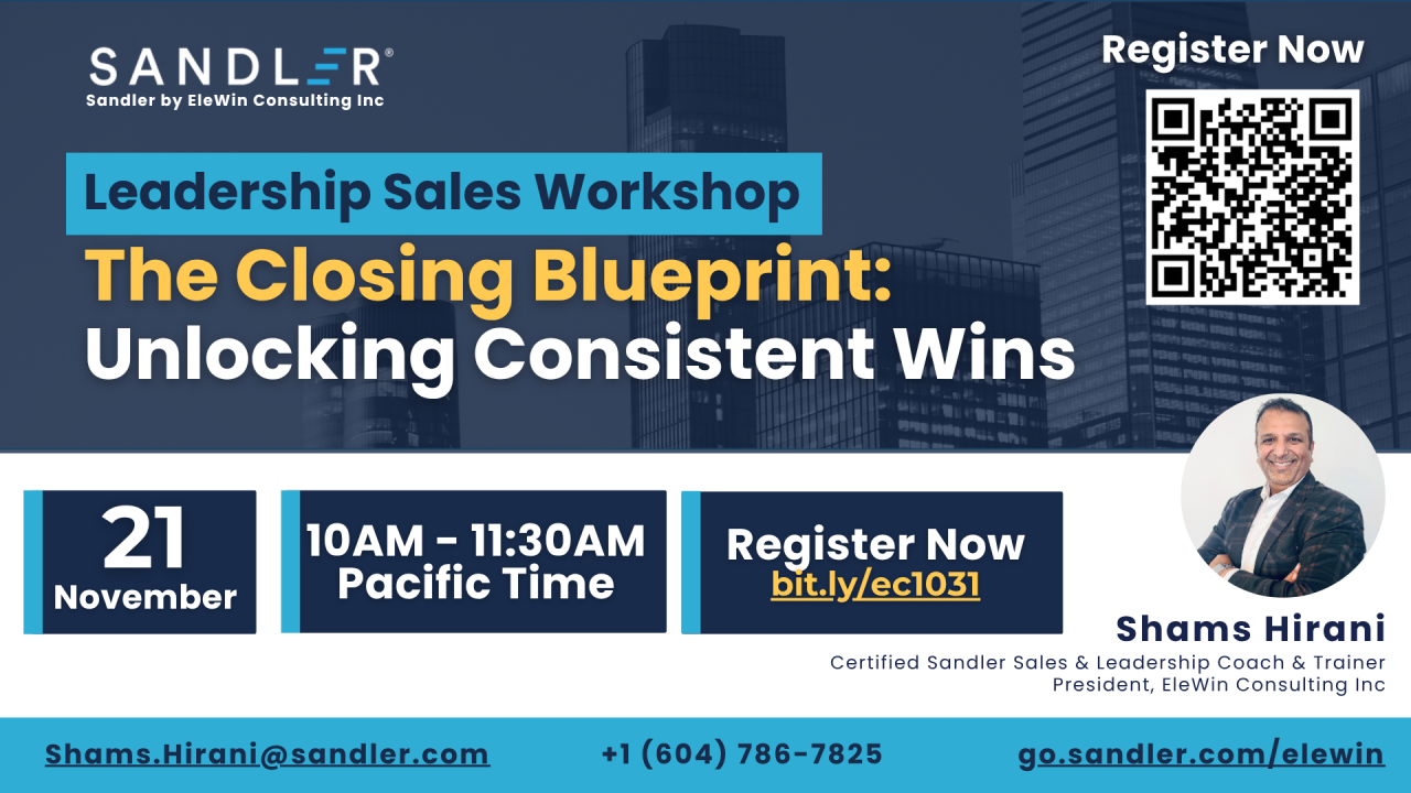 You’ll walk away with your Closing Blueprint - a practical, personalized framework you can apply immediately to elevate results and lead with impact. This isn’t theory. It’s what successful leaders do differently to create consistent, scalable growth. 👉 Reserve your spot: https://info.elewinconsulting.sandler.com/nov21